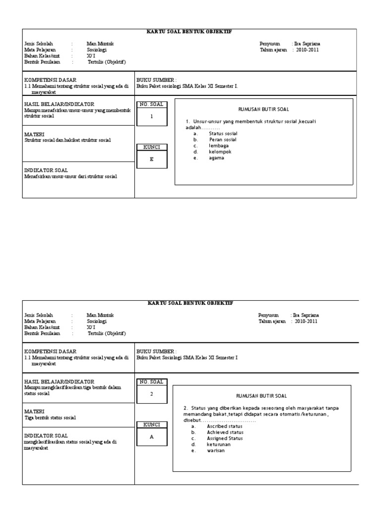 Kartu Soal Kelas Sosiologi Kelas x Man