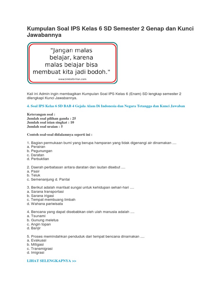 Contoh Soal Ips Kelas 6 Semester 2 Dan Kunci Jawaban - Dapatkan Contoh