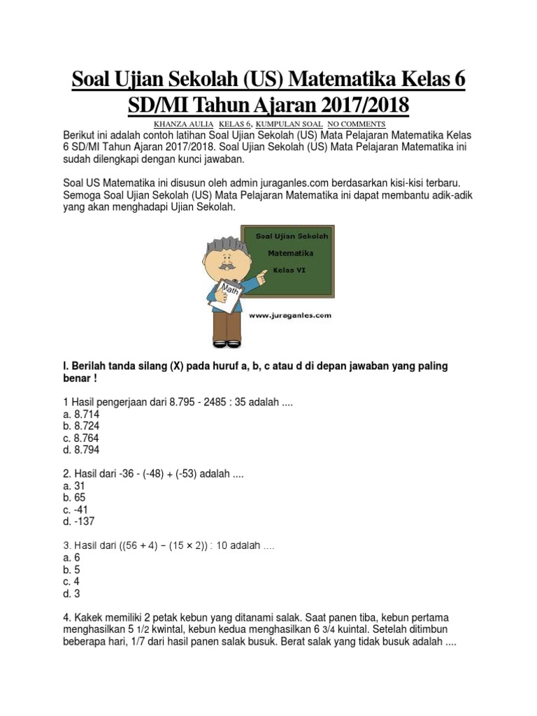 Soal Ujian Sekolah SD Kelas 6 lengkap dengan kunci dan pembahasan …