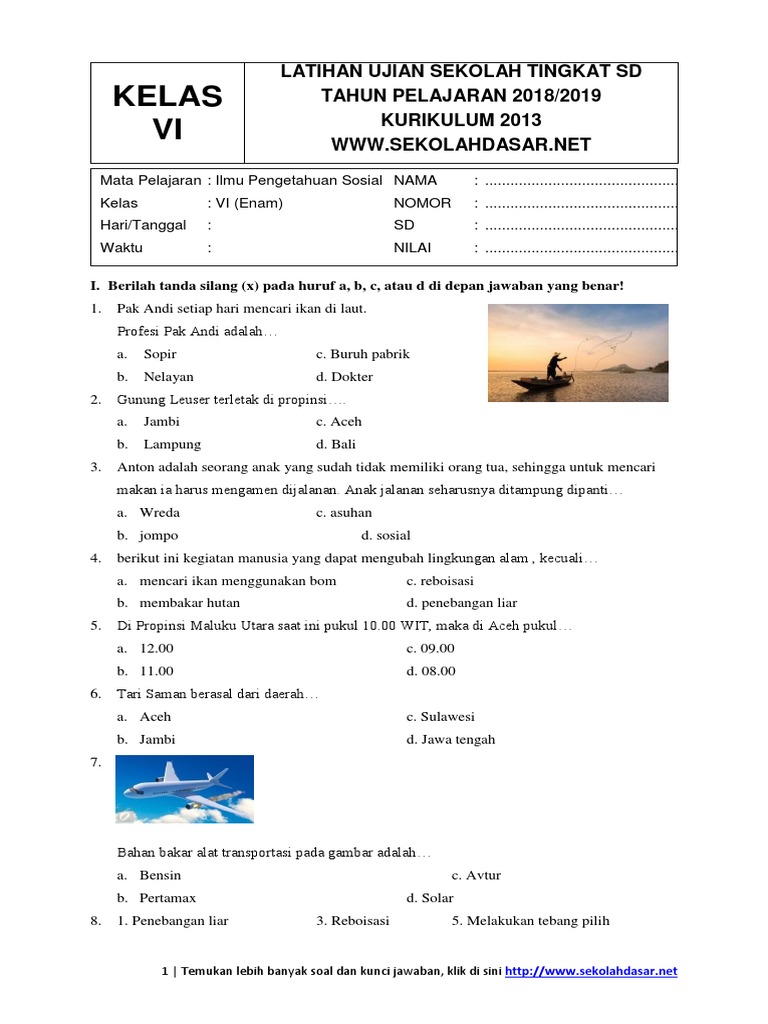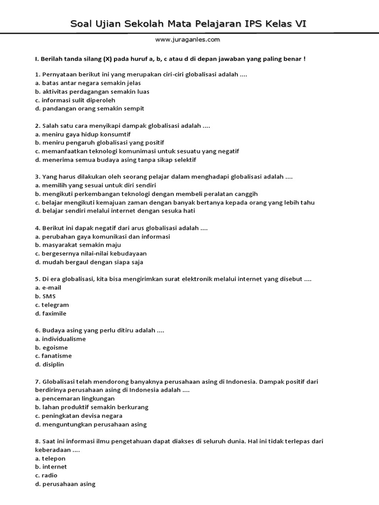Soal Ujian Sekolah Ips Kelas 6 Sd Mi Dengan Kunci Jawaban