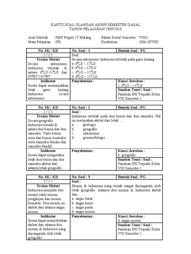 Soal Ujian Sekolah Ips Smp Kelas 9 Dan Kunci Jawaban - Guru Paud