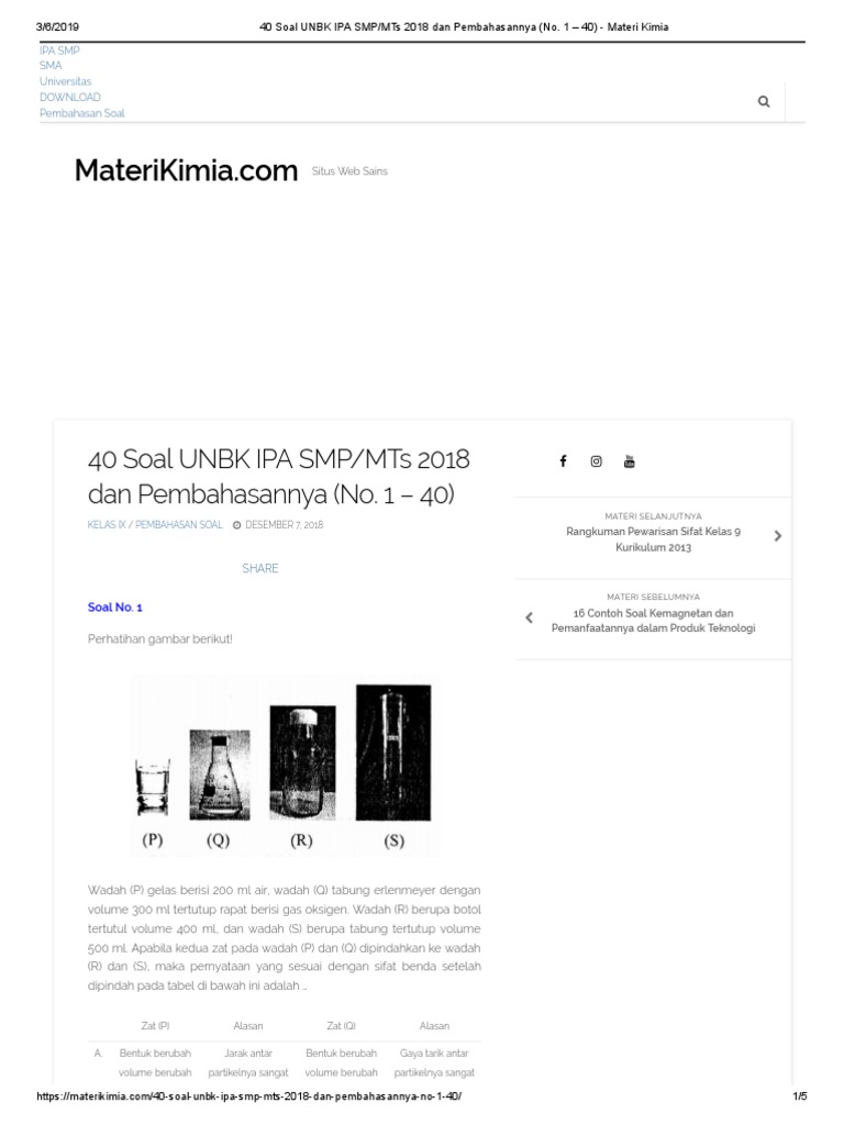 40 Soal UNBK IPA SMP_MTs 2018 Dan Pembahasannya (No. 1 …