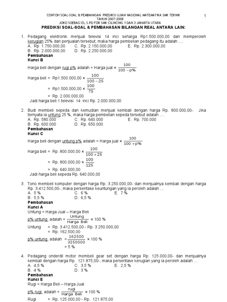 Pembahasan soal latihan tipe UN Matematika SMK teknik dan …