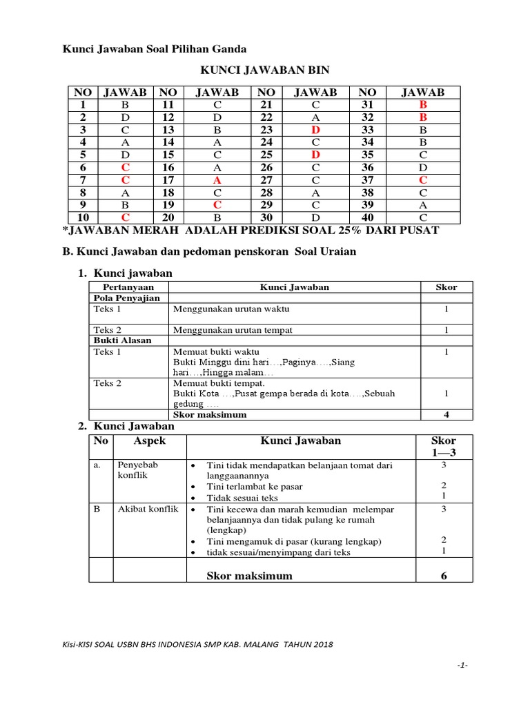 Prediksi Soal dan Kunci Jawaban USBN Bahasa Indonesia SMP 2019 …