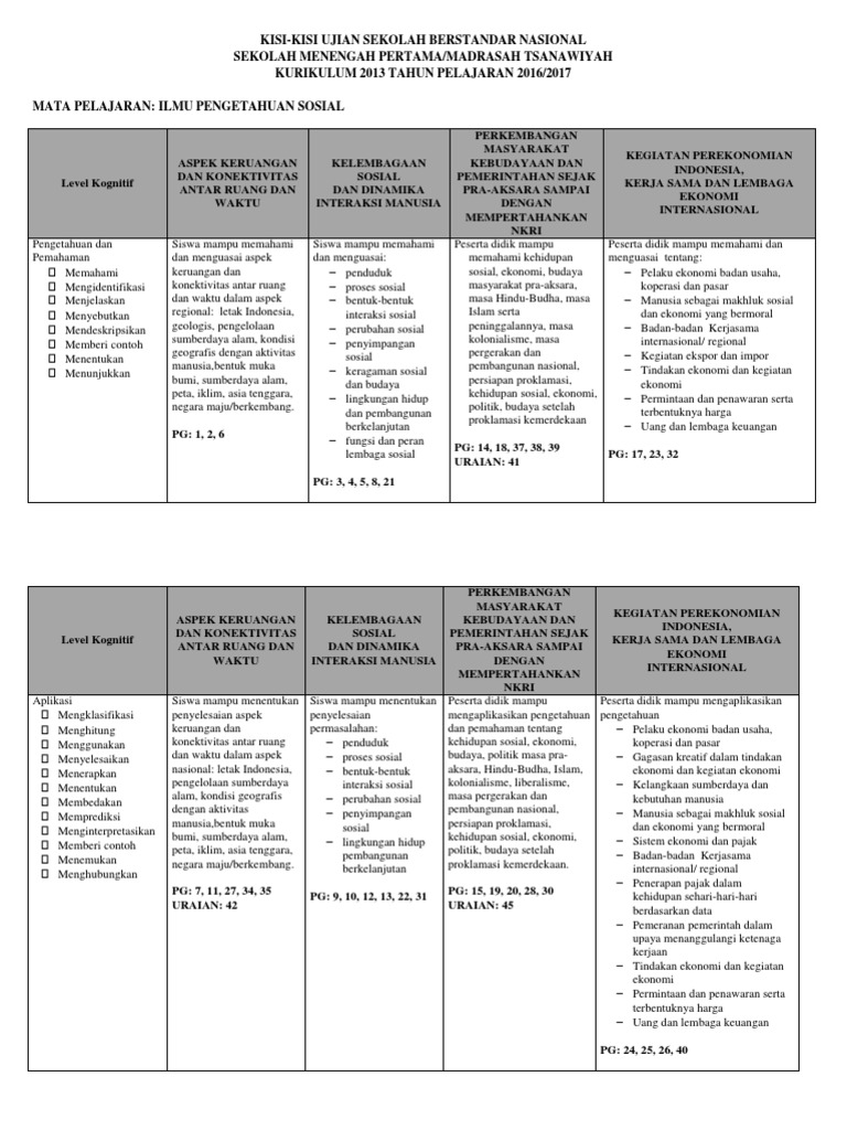 Unduh Kisi-kisi Ujian Nasional dan USBN Tingkat SMP/MTs Tahun 2017 …