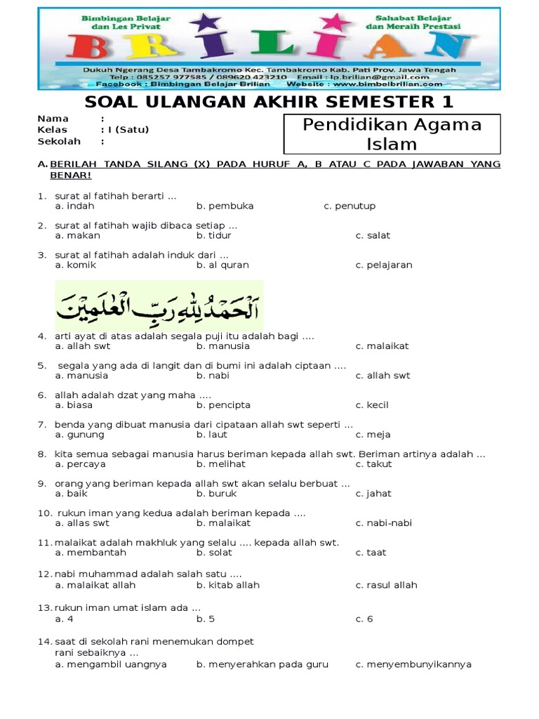 Download Kumpulan Soal Uts Genap Pendidikan Agama Islam Kelas 1 …