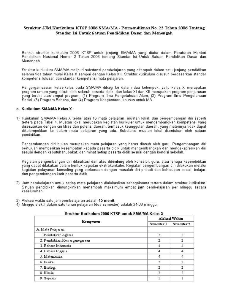 Struktur Kurikulum Ktsp Smp Permendiknas No 22 Tahun 2006 …