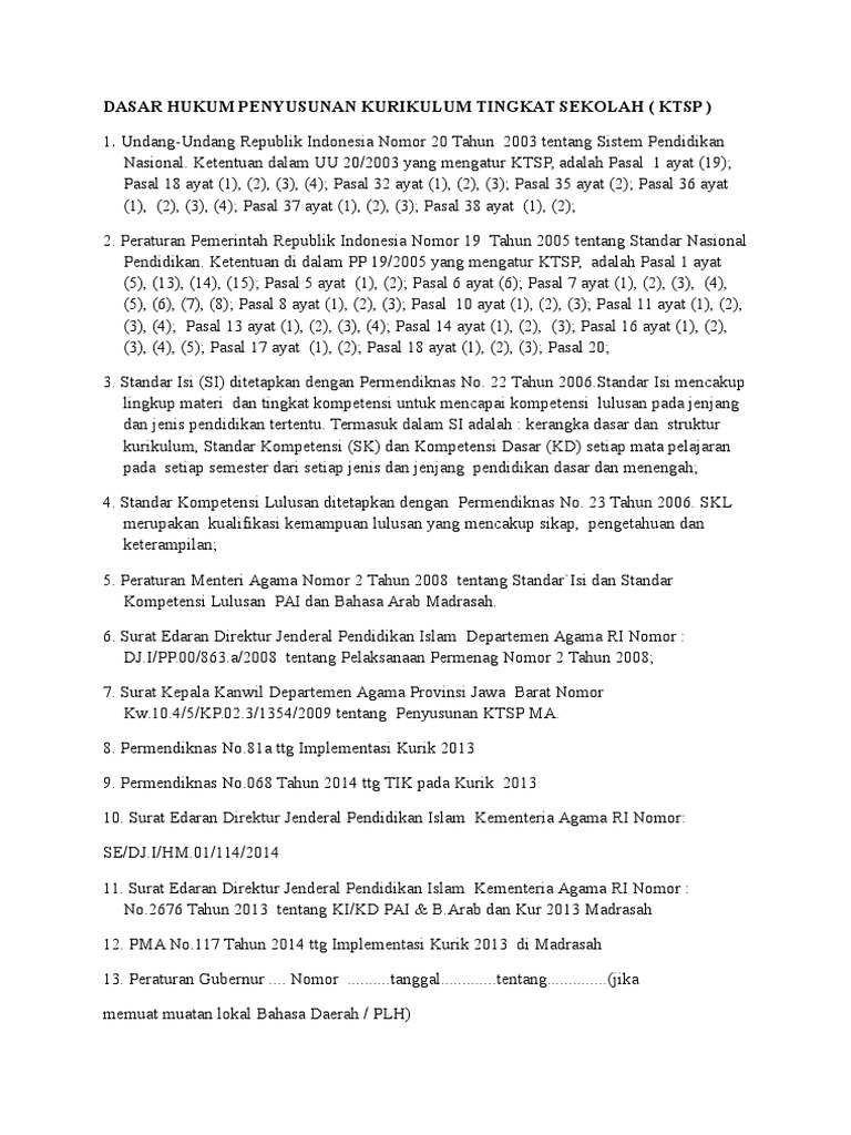 Dasar Hukum Penyusunan KTSP