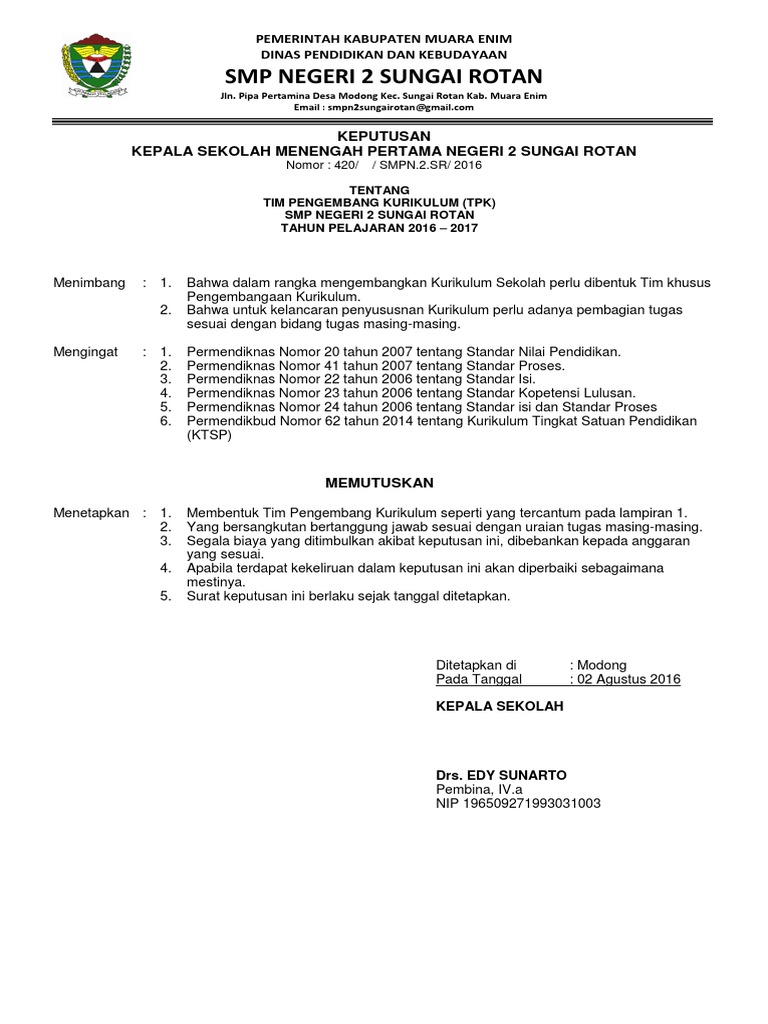 3 Contoh SK Penetapan Kurikulum Sekolah Format MS Word