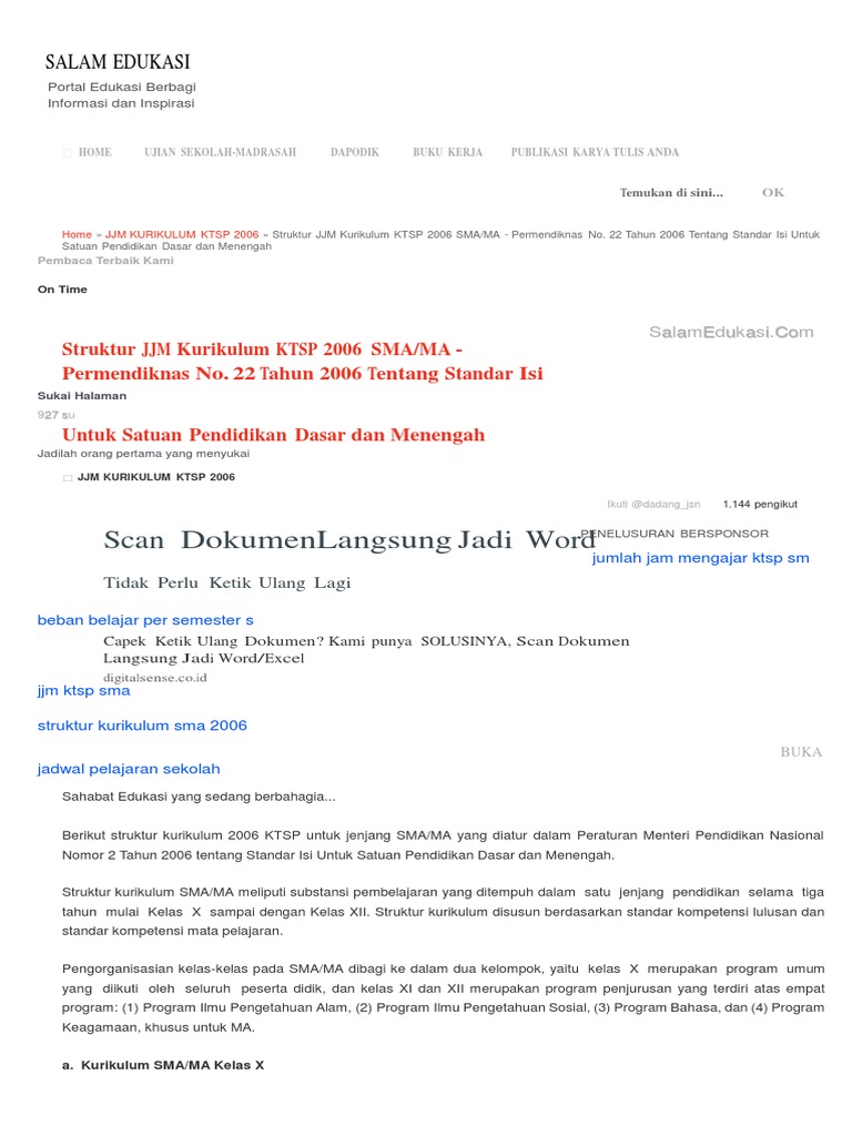 Pp 22 Tahun 2006 Tentang Alokasi Waktu Ktsp Sd Mi - Tentang Tahun