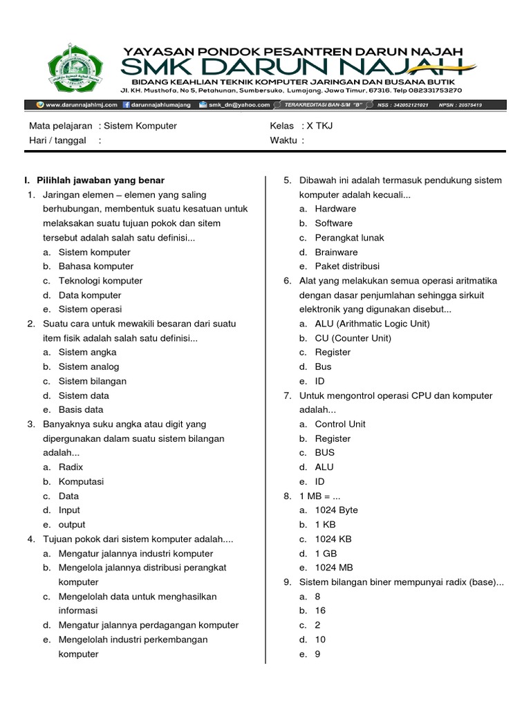 FlyExam - SISKOM 10.docx - LATIHAN SOAL DAN PEMBAHASAN SISTEM …