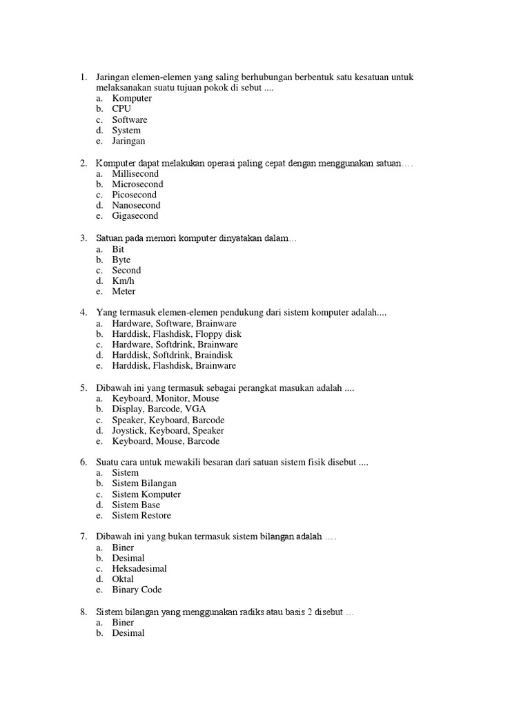 SISTEM KOMPUTER 1 | Computers Quiz - Quizizz