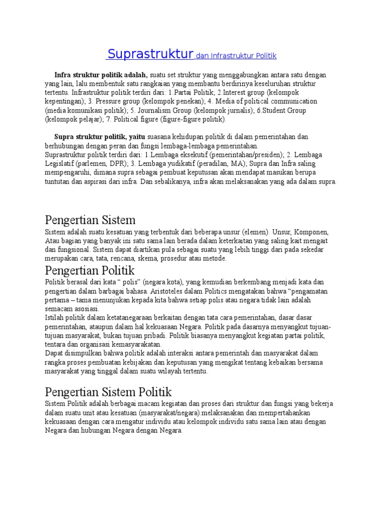 DOC) MENDESKRIPSIKAN SUPRA STRUKTUR DAN INFRA STRUKTUR POLITIK DI …