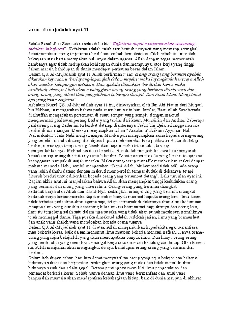 Surat Al-Mujadalah Ayat11 Lengkap Arti Dan Tafsirannya