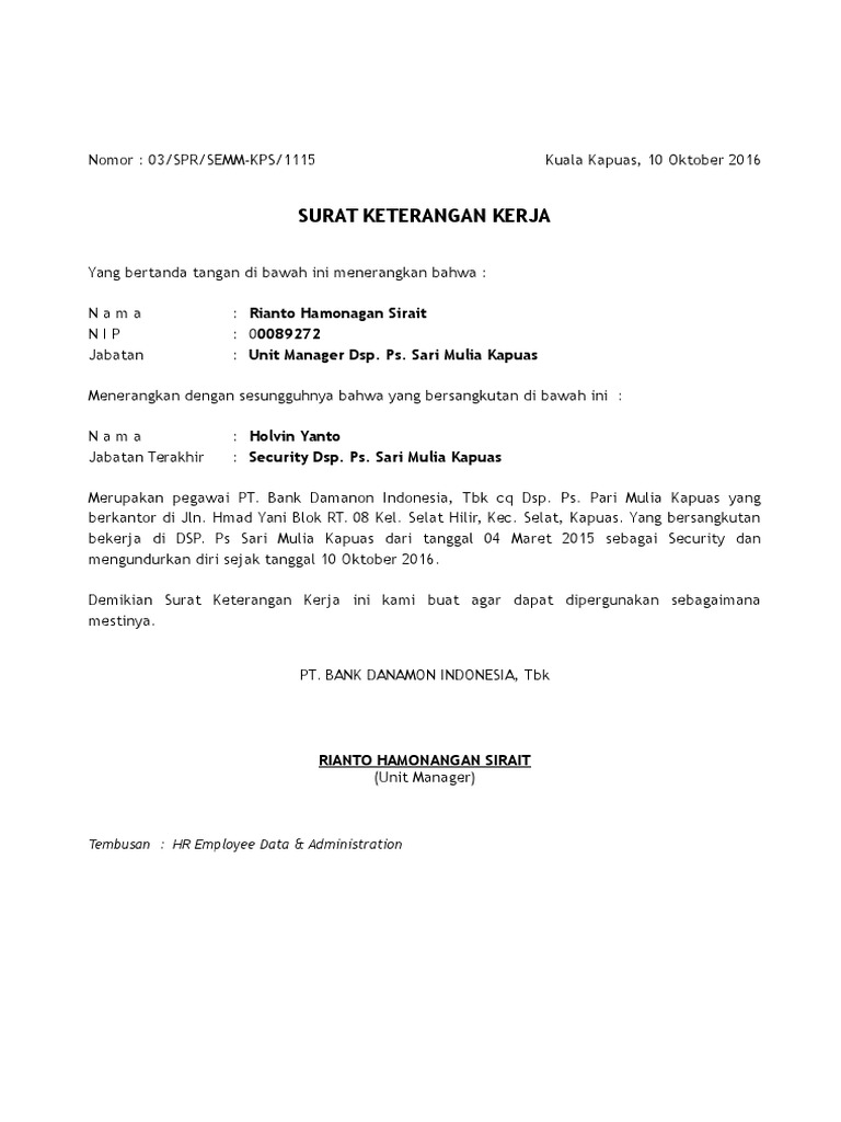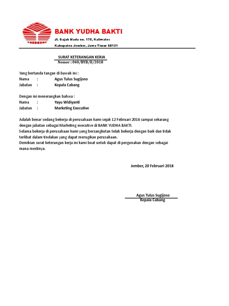 Contoh Surat Keterangan Kerja Bank Mega - Download Kumpulan Gambar