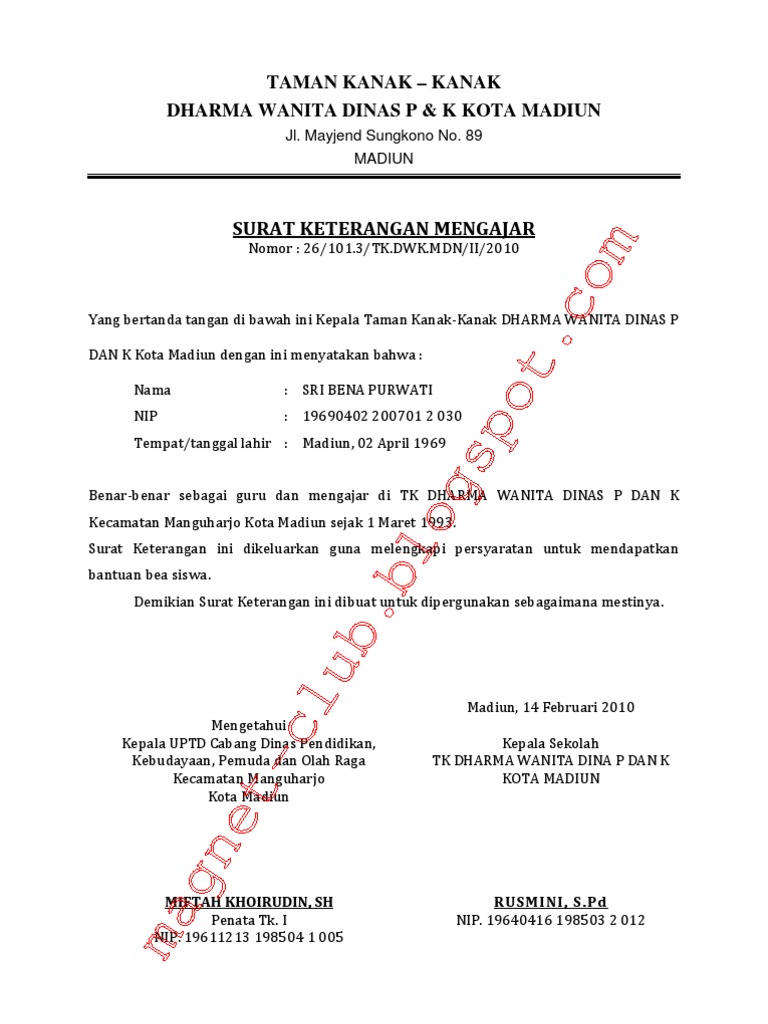 Surat Lamaran Kerja Guru Tk - PUSATRIK.COM