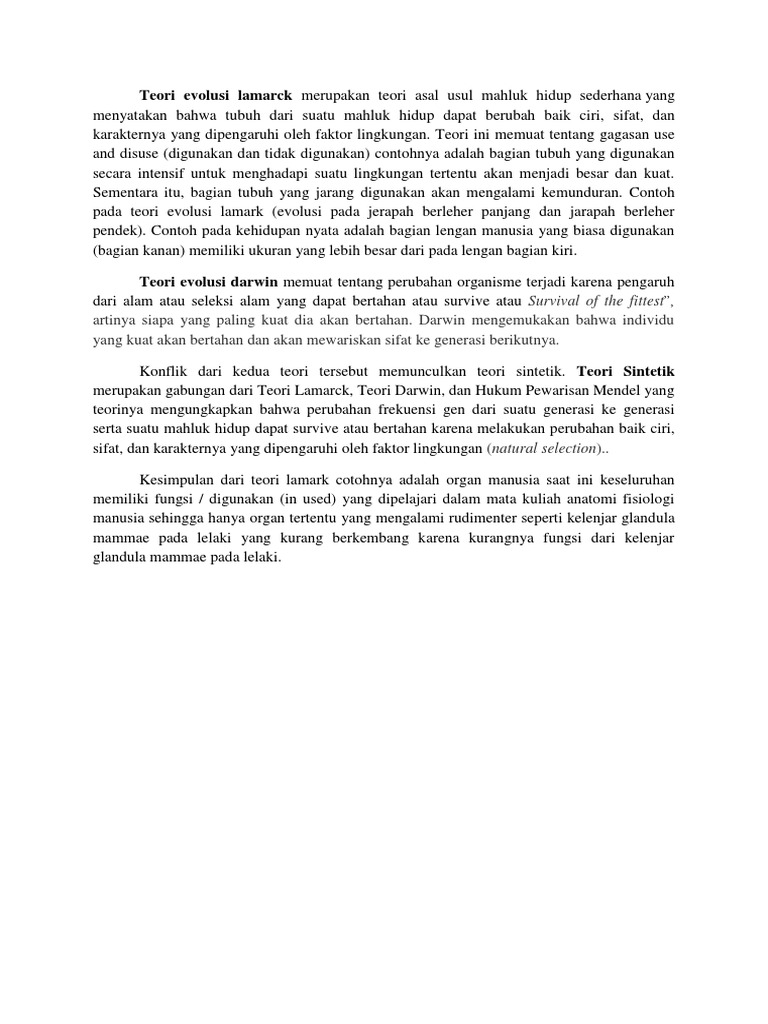 Teori evolusi lamarck merupakan teori asal usul mahluk hidup …