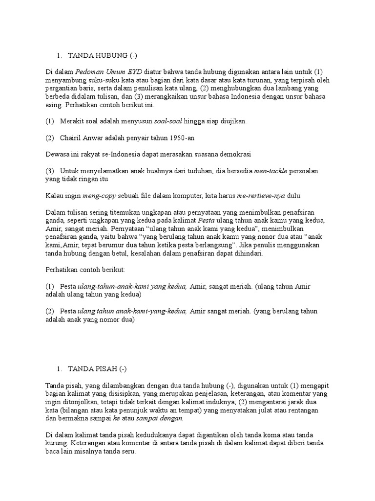 PENGGUNAAN TANDA HUBUNG (-) DAN TANDA PISAH ( ) (EYD …