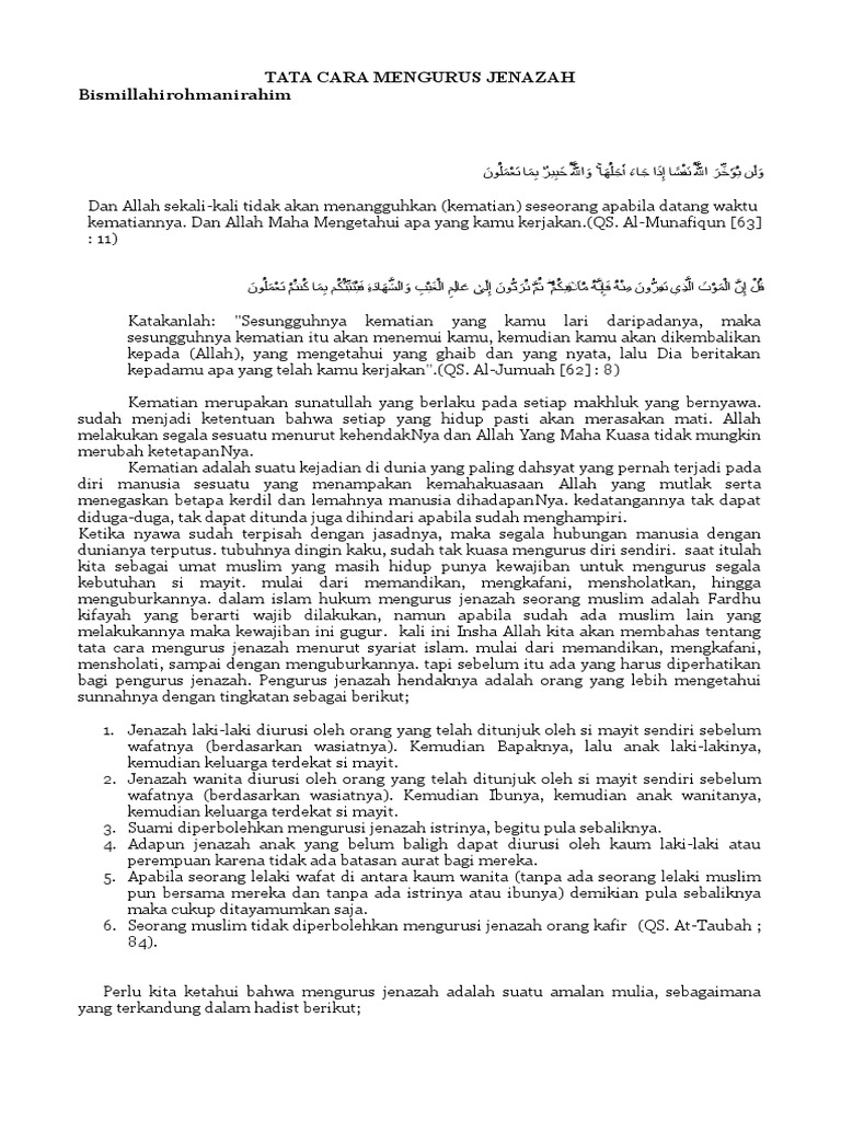 DOC) TATA CARA MENGURUS JENAZAH | Sri Sartika - Academia.edu