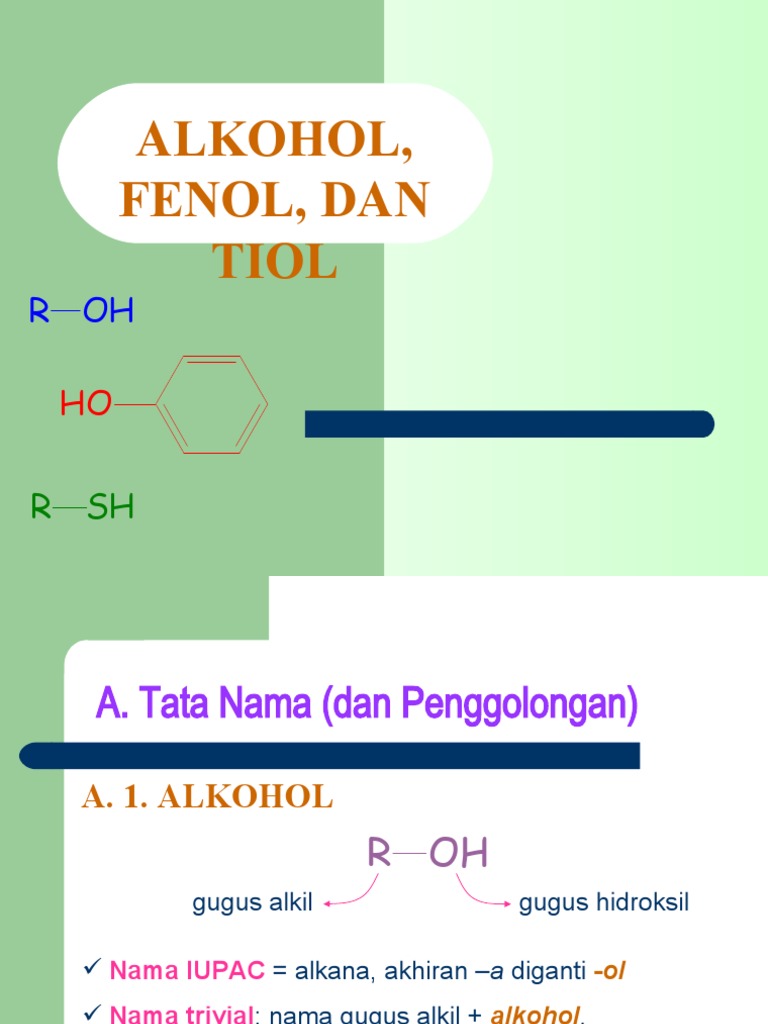 1 ALKOHOL, FENOL, DAN TIOL Tata Nama dan Penggolongan