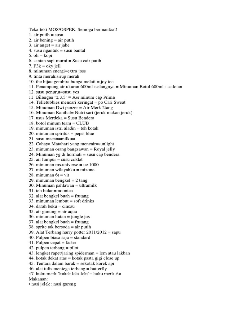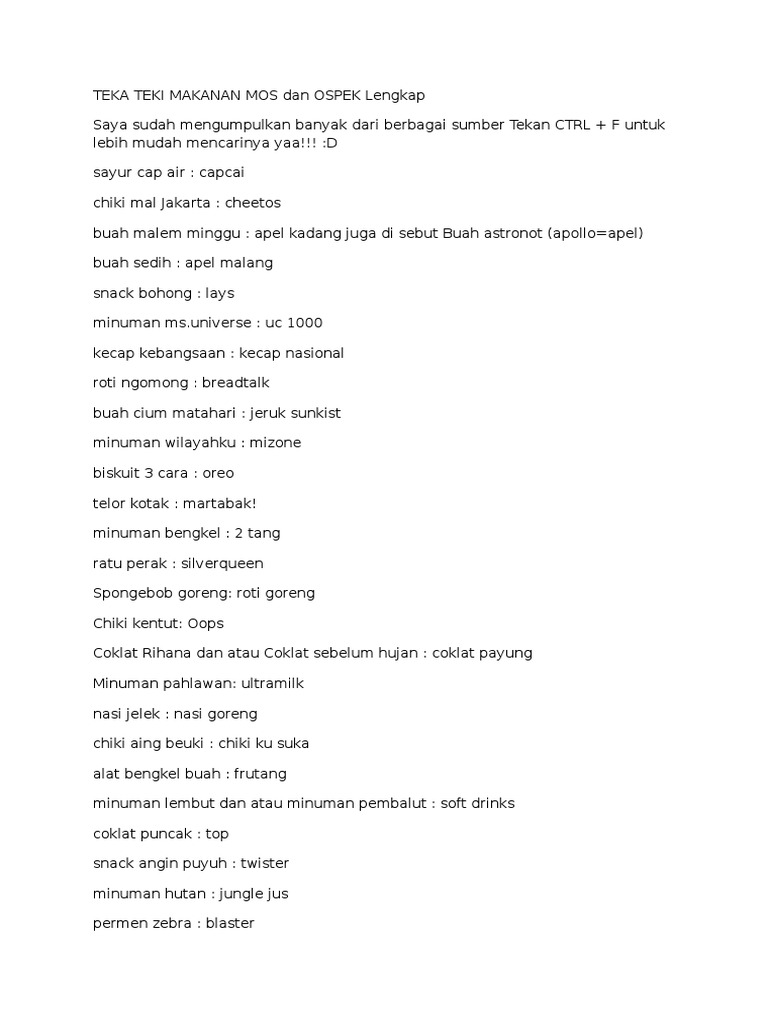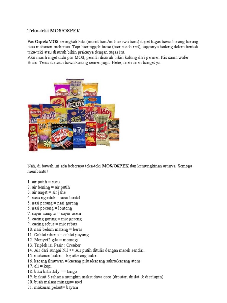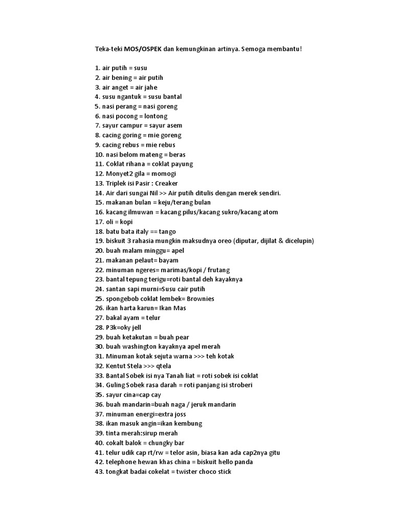 Teka Teki Makanan Mos Dan Ospek Lengkap - [DOCX Document]