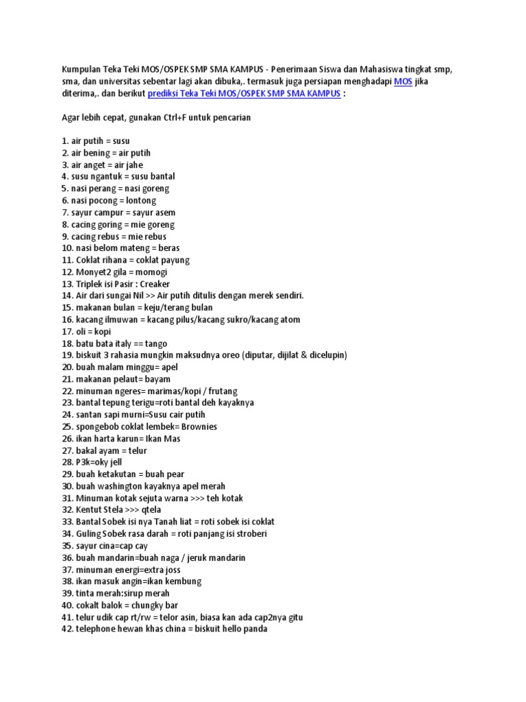 PDF) Kumpulan Teka teki mos / mopd / ospek terbaru | MR Roket …