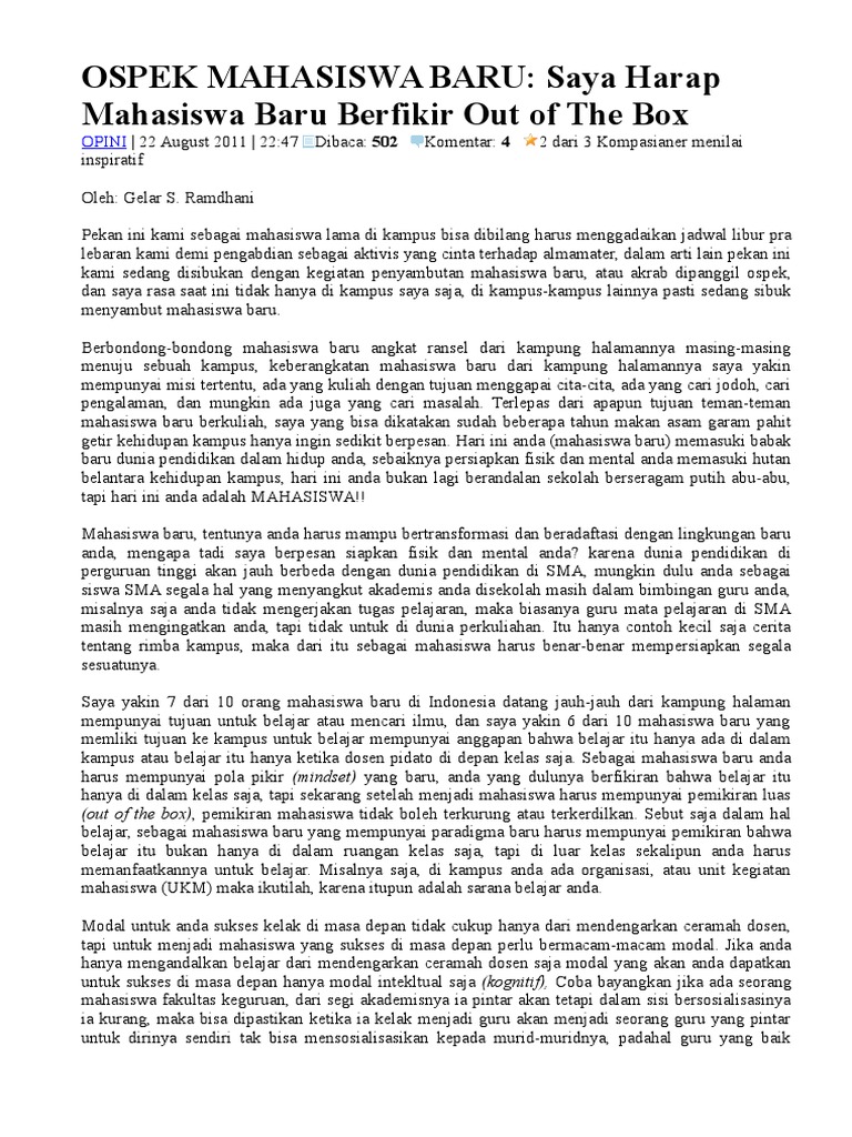 Istilah – Istilah Bawaan dalam MOS/MOPDB/OSPEK | Sharing