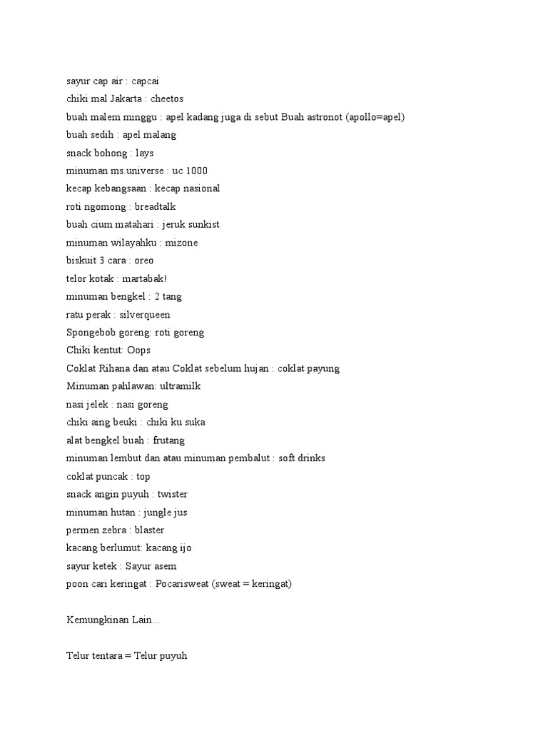 Tadisi MOS SMA) Bantu ane nebak nama nama makanan aneh gan. - Page …