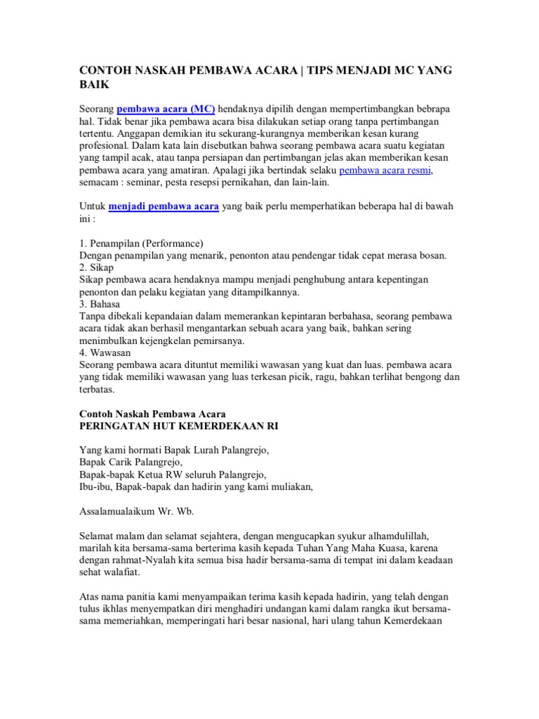Contoh Naskah Pembawa Acara