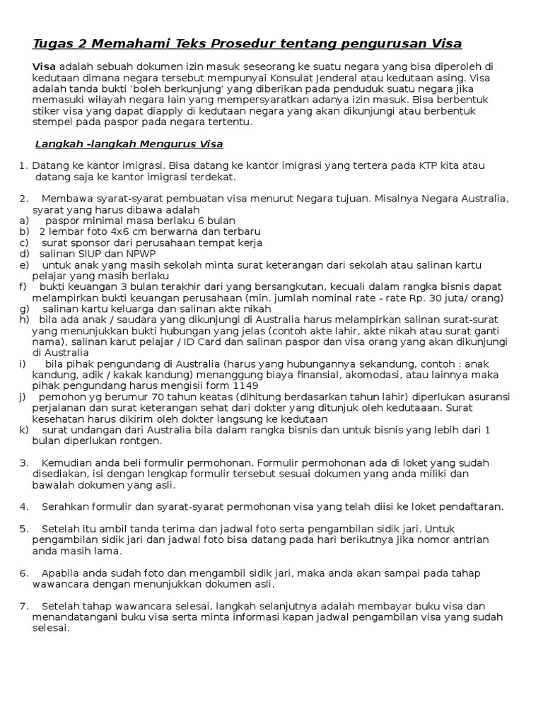 Tugas 2 Memahami Teks Prosedur Tentang Pengurusan Visa