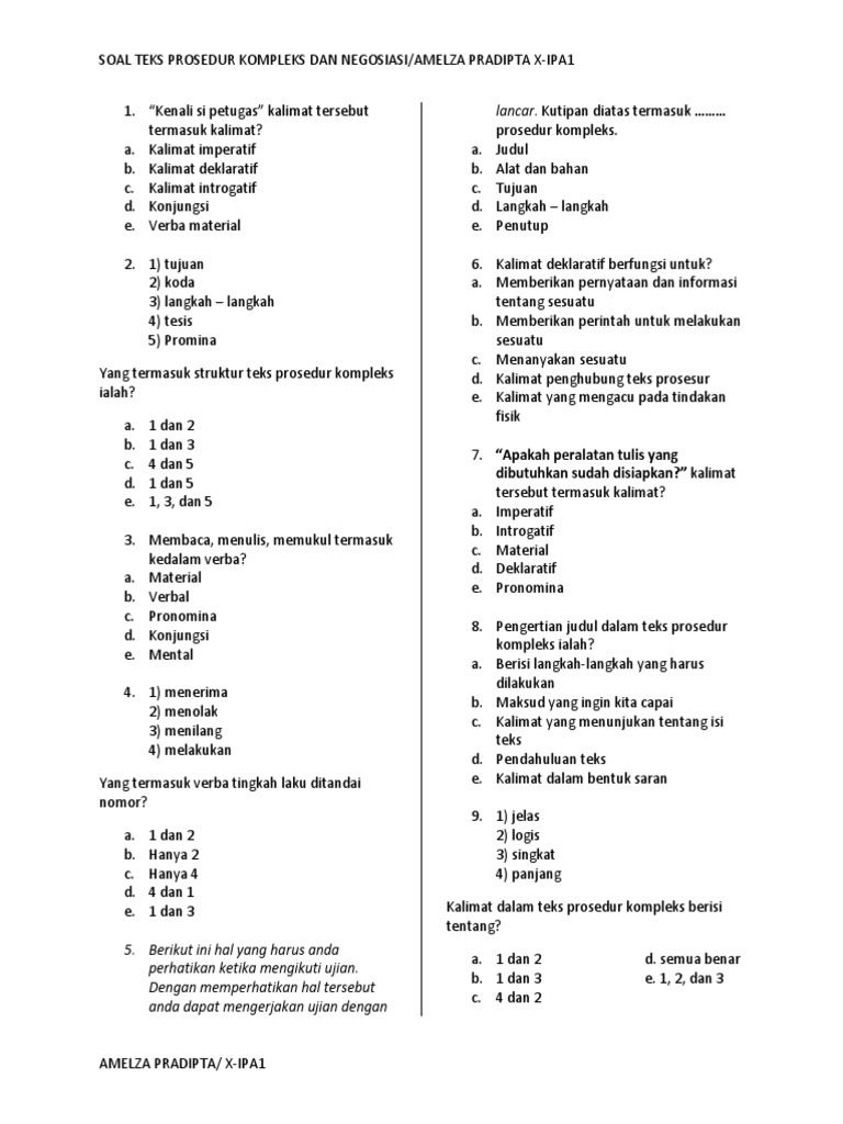 Soal Teks Prosedur Kompleks Dan Negosiasiamelza Pradipta X-ipa1