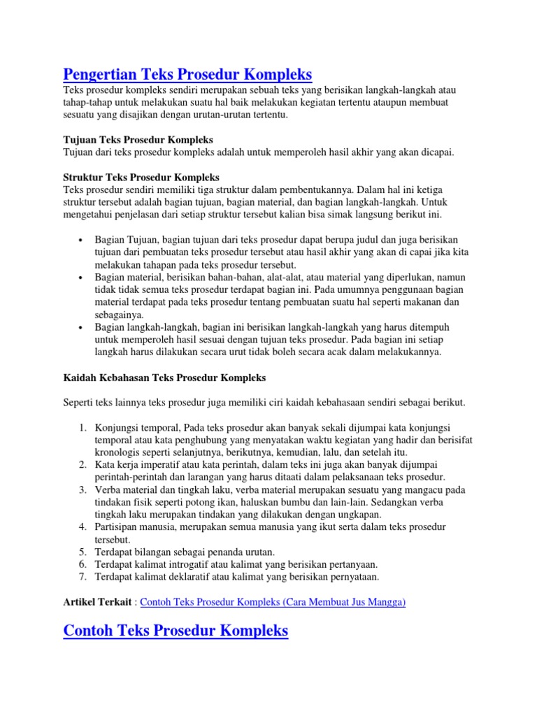 Pengertian Dan Struktur Teks Prosedur Kompleks Berbagi Struktur …