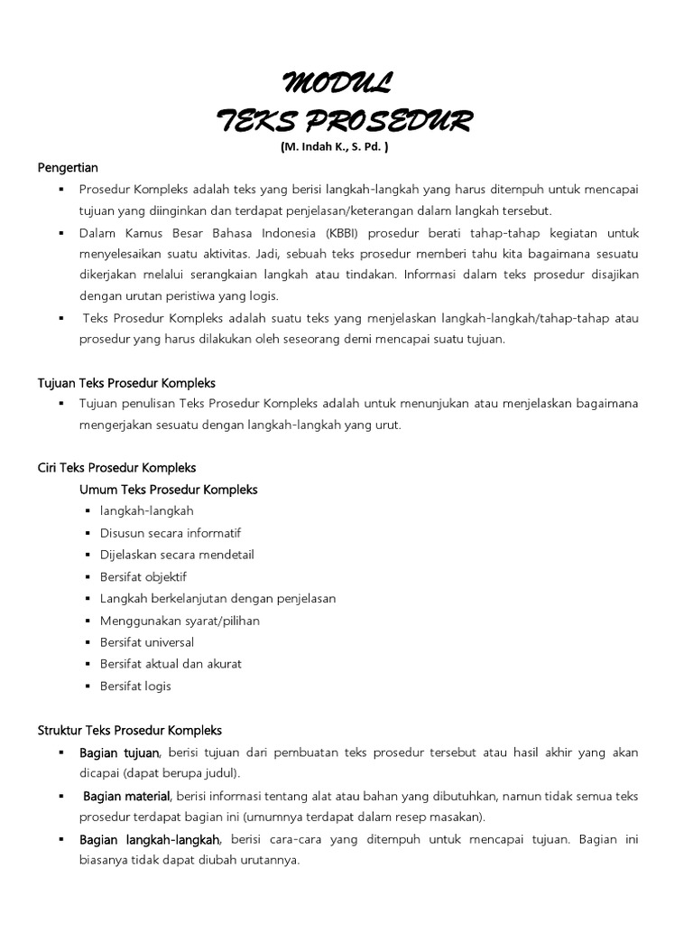 Modul Teks Prosedur: (M. Indah K., S. Pd. )