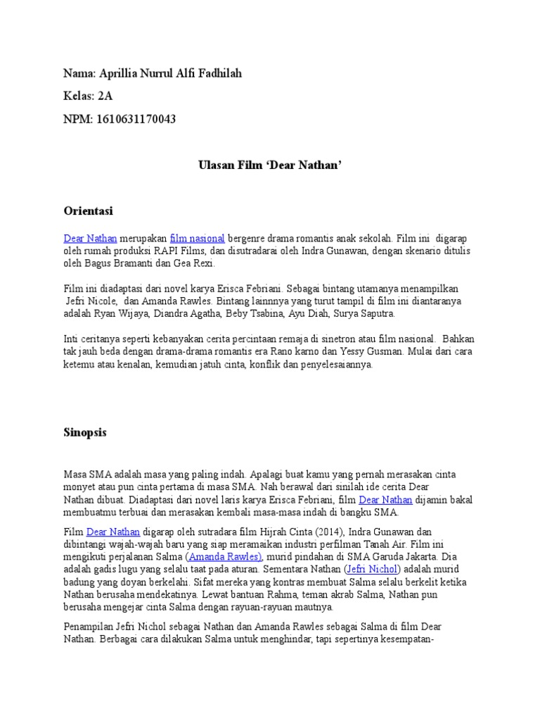 Teks Ulasan Dari Film Dear Nathan - Terkait Teks