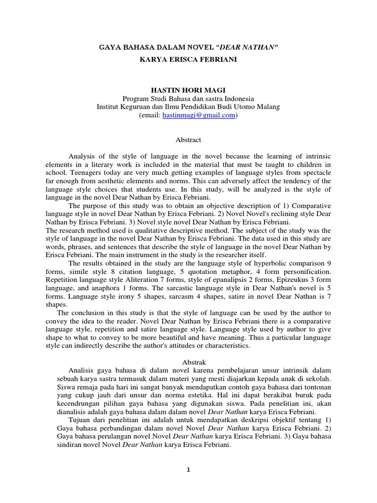 GAYA BAHASA DALAM NOVEL “DEAR NATHAN” KARYA ERISCA FEBRIANI …
