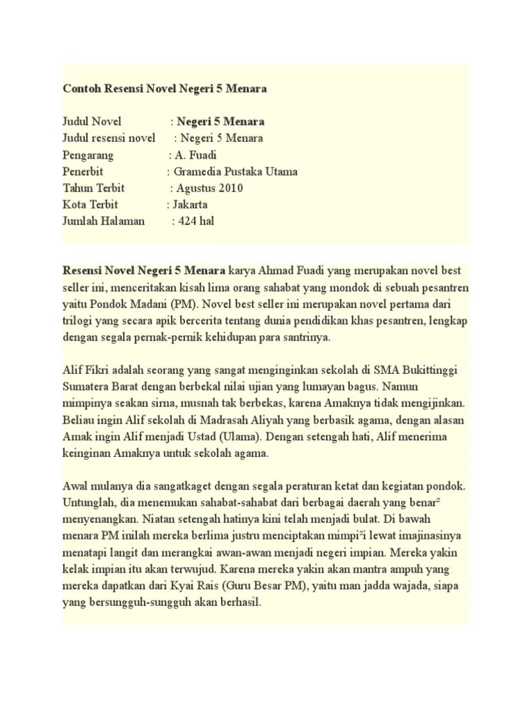 Contoh Teks Ulasan Novel Negeri 5 Menara Terkait Teks – Resep Kuini