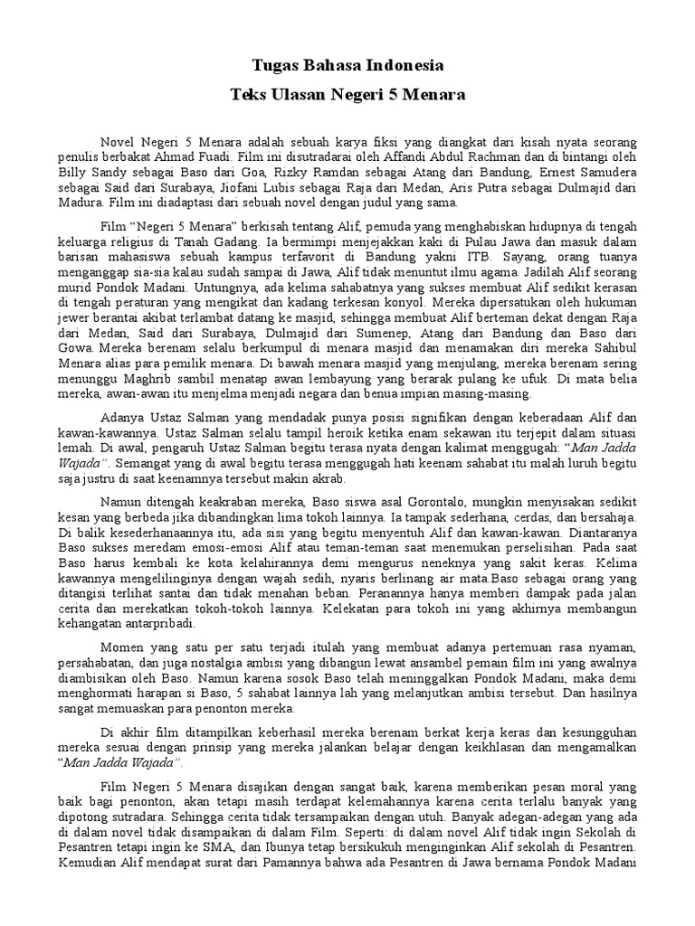 DOC) Tugas Bahasa Indonesia Teks Ulasan Negeri 5 Menara Negeri 5 Menara | sinta arinindia - Academia.edu
