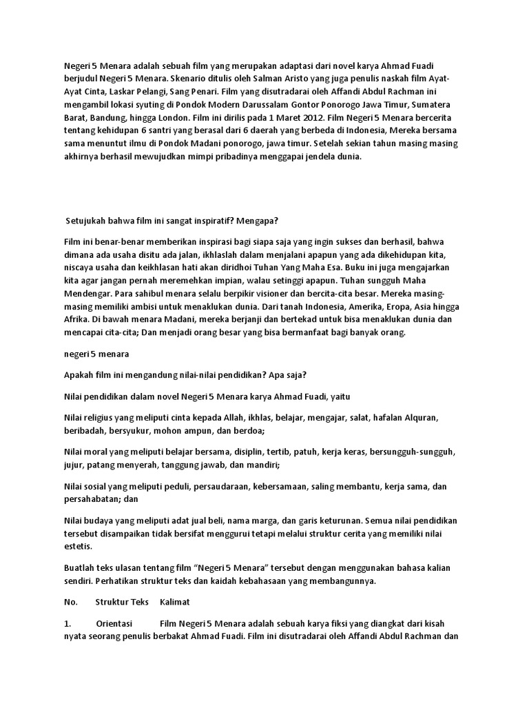 Struktur Teks Ulasan Dari Film Negeri 5 Menara