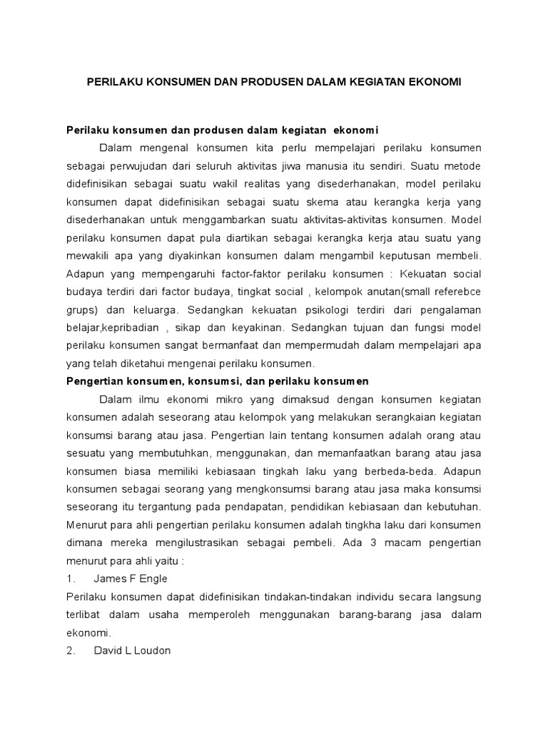 Perilaku Konsumen Dan Produsen Dalam Kegiatan Ekonomi