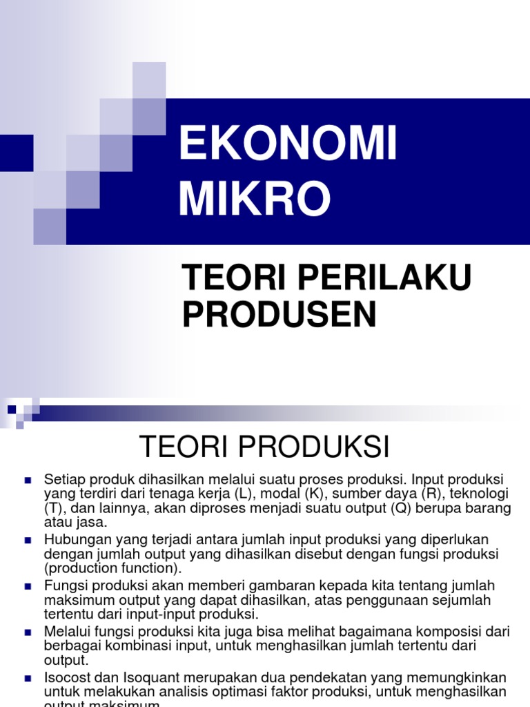 PPT) Teori Ekonomi Mikro (TEORI PERILAKU PRODUSEN) | Ade Fauji …