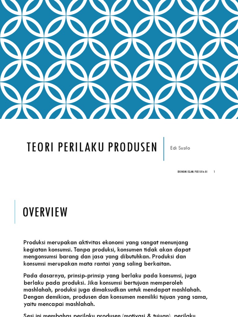 PERILAKU PRODUSEN : ETIKA DAN FAKTOR-FAKTOR PRODUKSI ISLAM – Dosen …