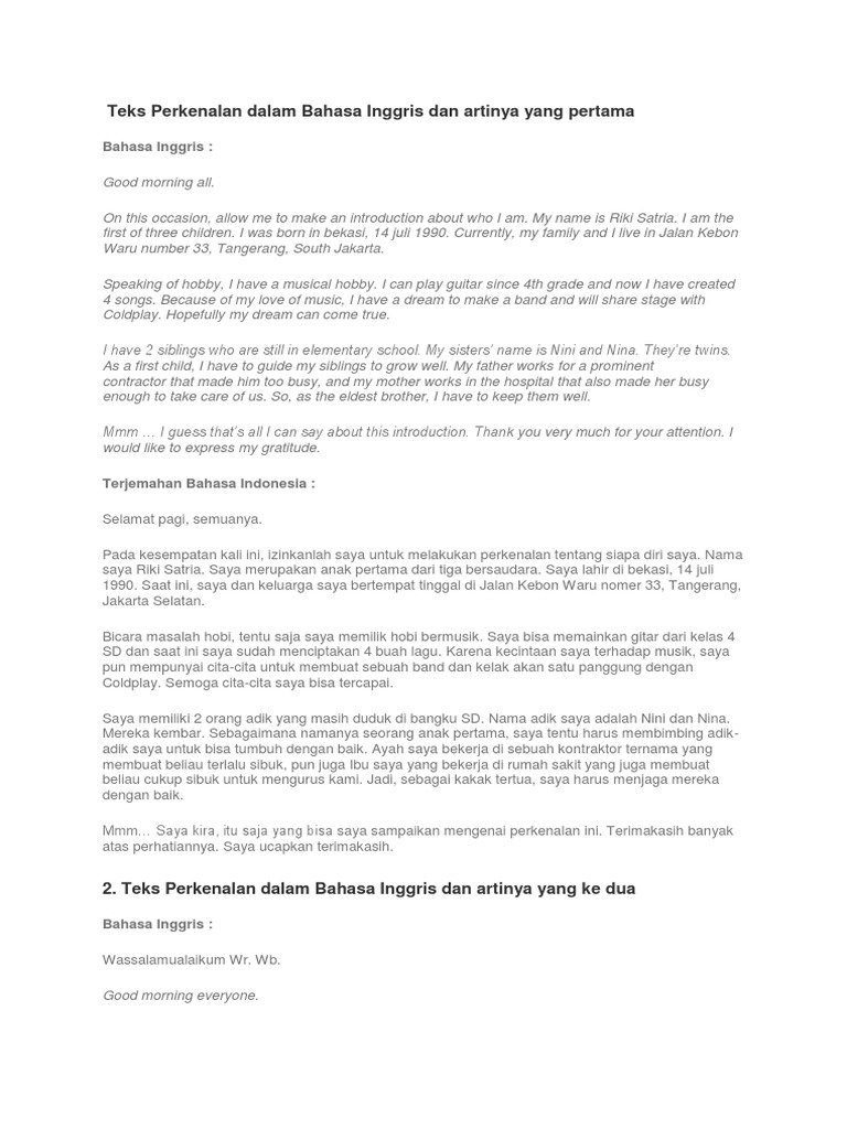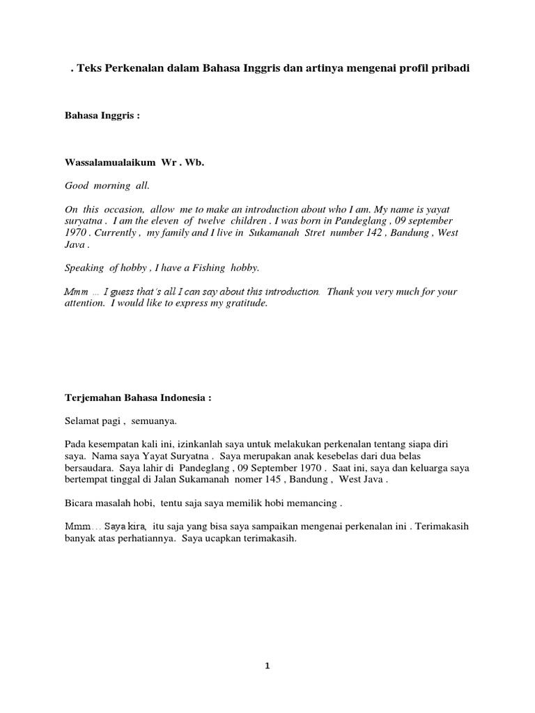 Teks Perkenalan dalam Bahasa Inggris dan artinya mengenai profil …