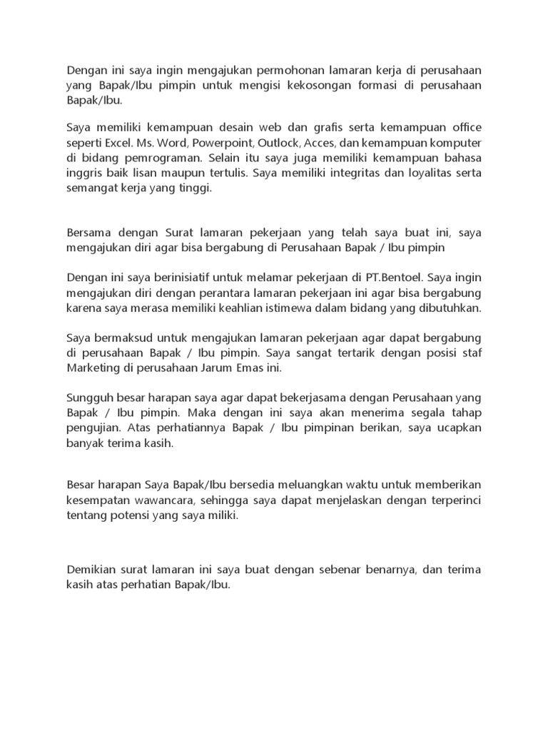 Application Letter Bahasa Indonesia - Contoh Surat Lamaran Kerja …