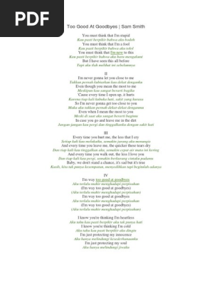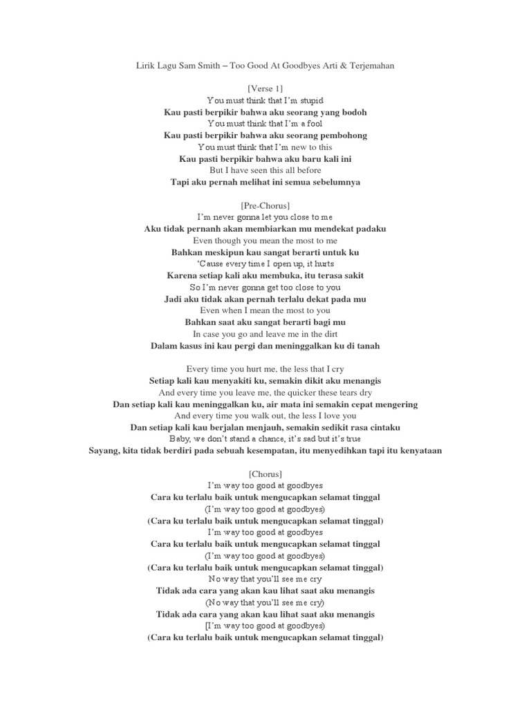 Terjemahan LIRIK: Lirik Sam Smith - Too Good at Goodbyes Dan Terjema… | Sam smith, Lagu, Lirik lagu