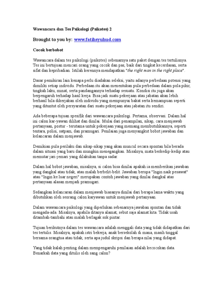 Contoh Tes Psikotes Tertulis - Surat Ras