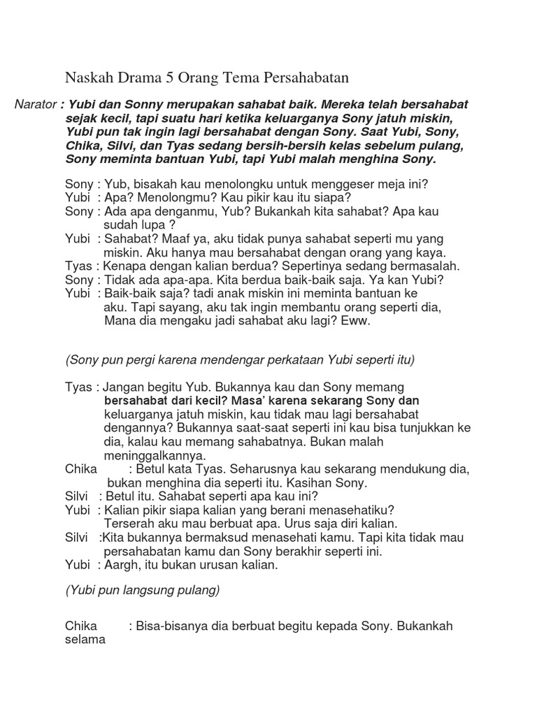 √ Contoh Naskah Drama Persahabatan untuk 3,4,5,6,7,8 Orang
