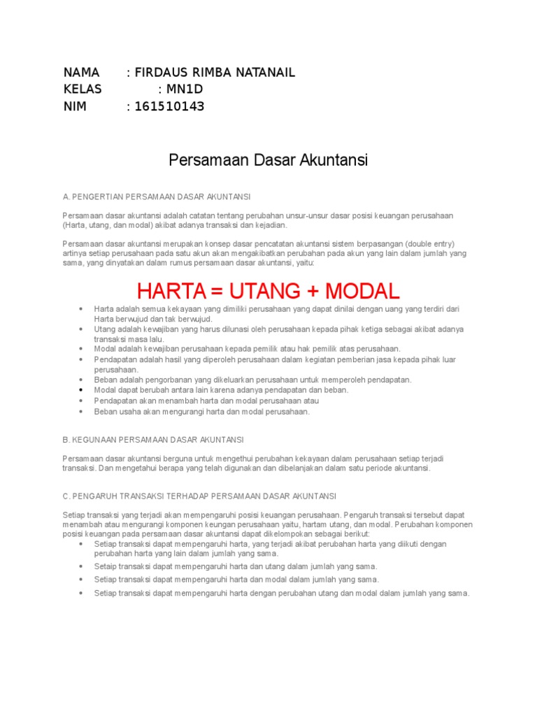 Persamaan Dasar Akuntansi