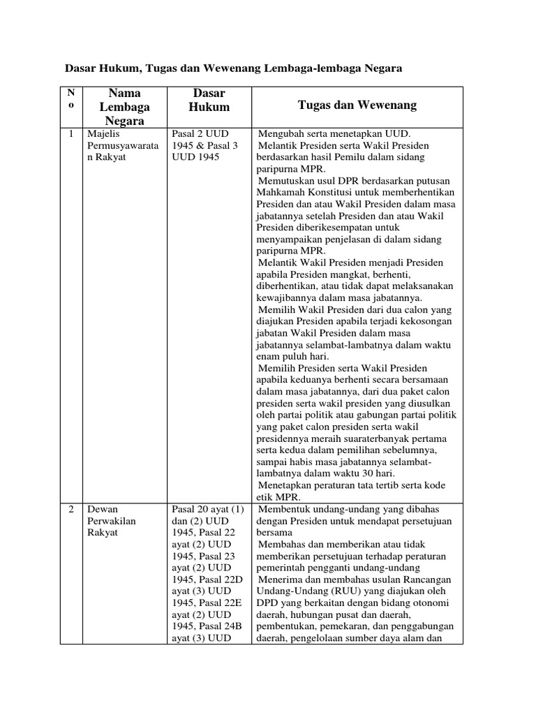 DOC) Dasar Hukum, Tugas dan Wewenang Lembaga-lembaga Negara | Bang …