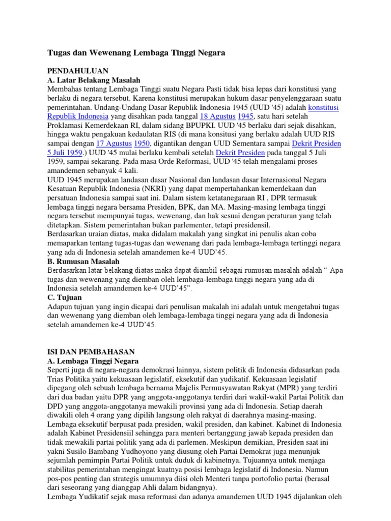 DOC) TUGAS DAN WEWENANG LEMBAGA NEGARA INDONESIA SEBELUM DAN …
