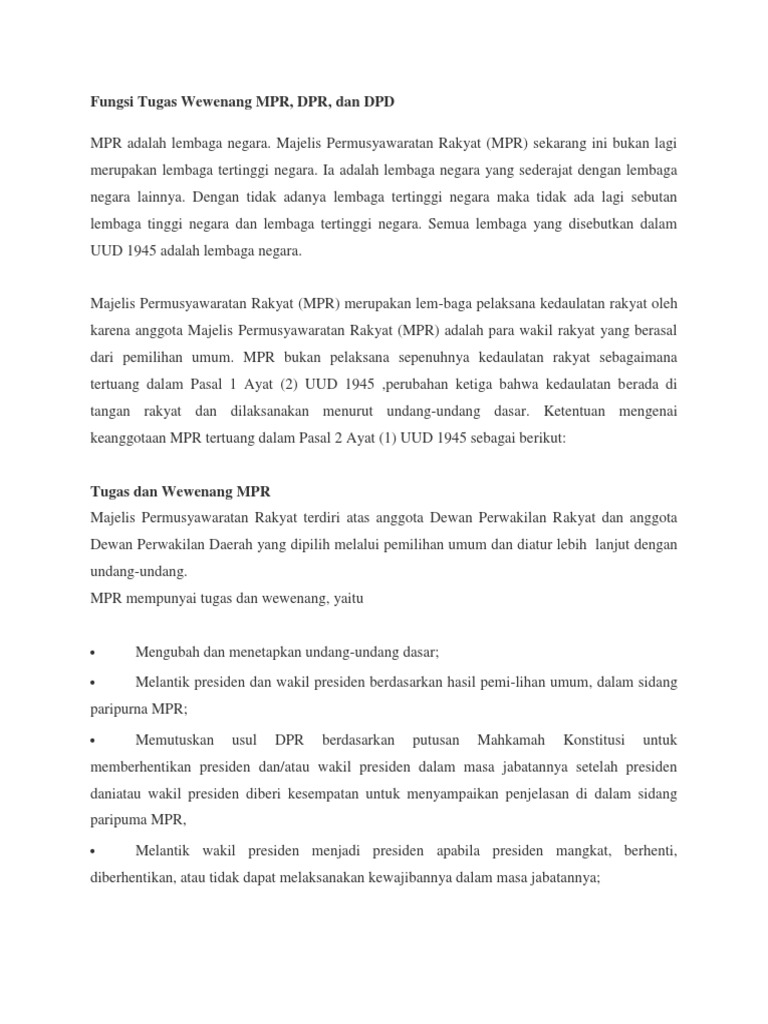 DOC) FUNGSI, TUGAS, DAN WEWENANG MPR | Kasih Kasih - Academia.edu